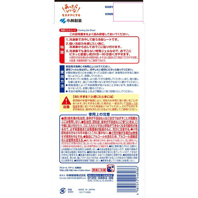特徴 ●冷凍庫で冷やして使う冷却シートです ●しっかりとした冷却が欲しい時に、冷凍庫から出しておでこに貼りつけます ●マイナス10℃の凍結持続ジェルがじっくり溶け出しおでこを強く冷やします ●通常の冷却効果は約4時間持続します メーカーコメント 冷凍庫で冷やして使う、強力冷却タイプの熱さまシート! 冷凍庫でも凍らない「特殊ジェル」採用 1.凍らない特殊ジェルを採用しているから、「冷凍庫で冷やしても“貼れる”」を実現!! 2.通常の熱さまシートと比較しても、ストロングは強力に冷やすことが出来ます。