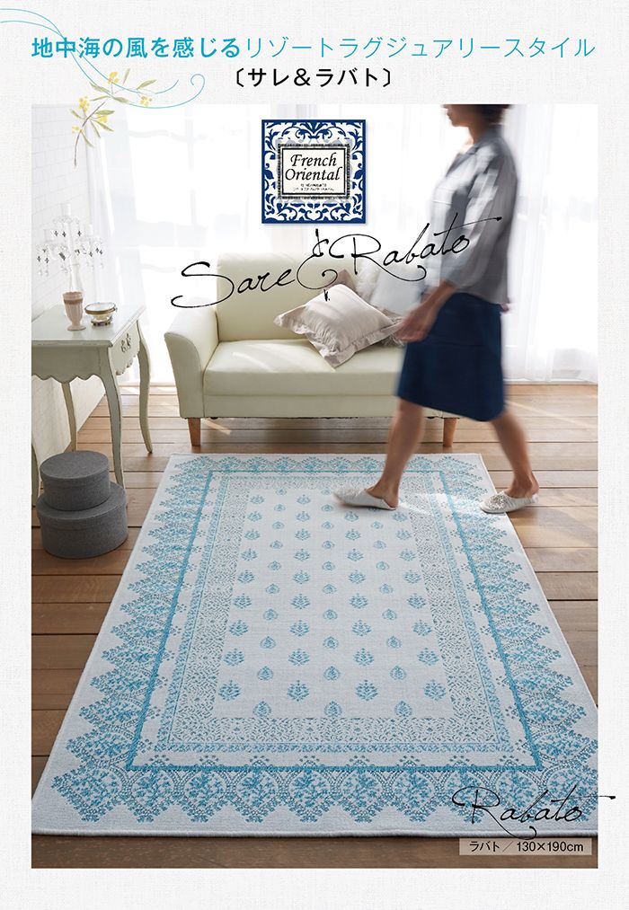 送料無料 フレンチマリンテイストラグ【サレ/ラバト】Lサイズ(190x240cm)絨毯 ラグ ラグマット エジプト綿 高密度カランバン ホットカーペット 床暖房対応