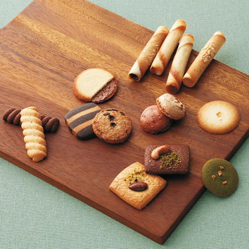 ■商品内容:アーモンドクッキー3枚、カシューナッツクッキー3枚、抹茶クッキー4枚、ツイストクッキー2種8本、アーモンドマカロン4枚、ストロベリーマカロン4枚、クリームサンドクッキー4枚、コルベイユ4種8本、ストライプクッキー4枚、アメリカンクッキー4枚、レモンクッキー4枚 合計50個 ■アレルゲン:卵・乳・小麦・大豆・ゼラチン・カシューナッツ ■箱サイズ:約34.5×27.2×7.3cm ■賞味期限 常温約5ヶ月間 [日本製]※お届けについて この商品のお届けには3日〜7日間ほどかかります。