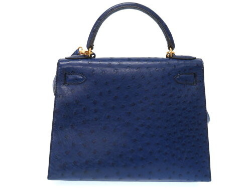 美品 エルメス ケリー28 オーストリッチ ブルーロイ 2WAY ショルダー ハンド バッグ □B刻印 0031【中古】HERMES 青 ストラップ付